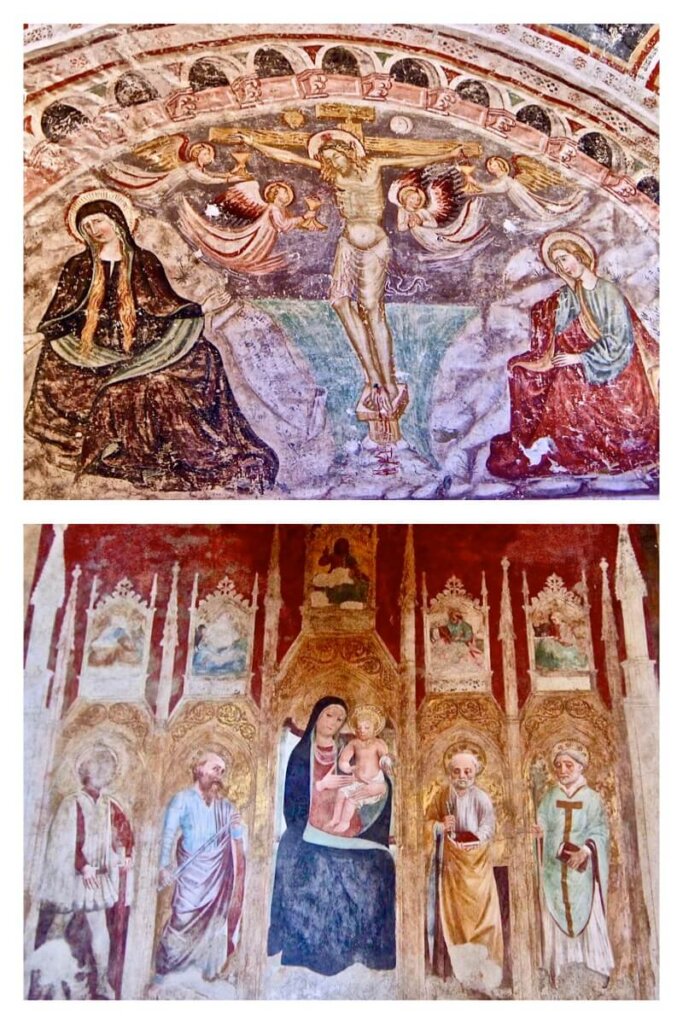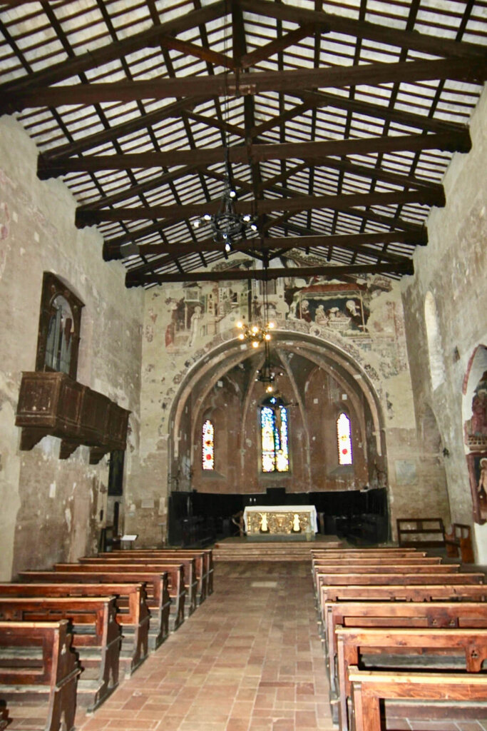Walking through a castle, as one does in Italy, enjoying the shops and the people in Montefalco, Italy, a town in the Umbria region of Italy, we came across the Church of Sant’Agostino, a small Gothic-style church built in the 13th century. It was completed in 1275 and dedicated to Saint Augustine, Bishop and Doctor of the Church.