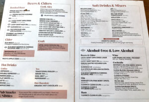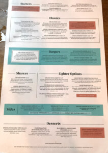The Turf serves British ales, local brewery selections, and standard pub meals. The menu periodically changes but maintains a focus on classic British pub food, and it has indoor and outdoor seating. The place was hopping when we arrived, and there was no place to sit. As we were looking around, a couple of guys offered us their booth as they were leaving. A booth is always my first choice. It was perfect.